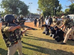 હિંમતનગરમાં પોલીસ પરેડ ગ્રાઉન્ડ ખાતે શુક્રવારે સવારે બીજા દિવસે વાર્ષિક ઇન્સ્પેકશન શરુ થયું હતું.પ્રથમ જીલ્લાની પરેડનું નિરક્ષણ કર્યા બાદ પરેડ માર્ચ કરવામાં આવી હતી.ત્યારબાદ વિવિધ ઇવેન્ટો જેમાં રાયફલ પીટી,ખાલી હાથ પીટી,લોગ પીટી,લાઠી ડ્રીલ,વેપન ટ્રેનિંગ,કેદી પાર્ટી,મેડીસીન બોલ,ગાર્ડ માઉન્ટીગ,યોગાસન,કરાટેનું નિરીક્ષણ કરવામાં આવ્યું હતું. એસઓજીઅને એલસીબી દ્વારા ચેક પોસ્ટ,બિલ્ડીંગ ઇન્ટરવેશન, મોબડ્રીલ રજુ કરવામાં આવ્યું હતું.વાર્ષિક ઇન્સ્પેકશનને લઈને આઈ જી વિરેન્દ્રસિંહ યાદવ અને જીલ્લા પોલીસ વડા ડૉ.પાર્થરાજસિંહ ગોહિલની અધ્યક્ષતા લોક દરબાર યોજાયો હતો.જેમાં સાબરકાંઠા જીલ્લાના વિવિધ પોલીસ સ્ટેશન વિસ્તારમાંથી સ્થાનિકો અને અગ્રણીઓ ઉપસ્થિત રહ્યા હતા.જેમણે પોતાના વિસ્તારમાં ટ્રાફિકની સમસ્યા,સીસીટીવી લગાવવા અને સાબર ફ્રોડ વિષેની રજુઆતો કરી હતી.આ પ્રસંગે હેડ ક્વાર્ટસ ડીવાયએસપી પાયલ સોમેશ્વર,SC/ST સેલ ડીવાયએસપી કુલદીપ નાયી,ઇડર ડીવાયએસપી સ્મિત ગોહિલ, એસઓજી પી.આઈ ડી.સી.પરમાર, એલસીબી પીઆઇ ડી.સી.સાકરિયા,હિંમતનગર એ ડીવીઝન પી.આઈ પી.એમ.ચૌધરી,બી ડીવીઝન પી.આઈ એમ.ડી.ચૌહાણ, સહીત પોલીસ સ્ટેશનના પી.આઈ પી એસઆઇ અને પોલીસ કર્મીઓ ઉપસ્થિત રહ્યા હતા. જીજ્ઞેશ સોની હિંમતનગર