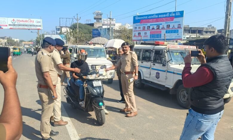 સાબરકાંઠા જિલ્લામાં માર્ગ સલામતી માસ નિમિત્તે આરટીઓ અને ટ્રાફિક પોલીસ દ્વારા ટ્રાફિક અવેરનેસ અભિયાન