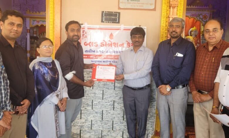 હિંમતનગરના બેરણા ખાતે રક્તદાન કેમ્પમાં ૭૧ યુનિટ રક્ત એકત્રિત કરાયું