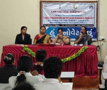 હિંમતનગર કેળવણી મંડળ સંચાલિત લૉ કોલેજ, હિંમતનગરમાં Innovation Club, Sarathi-1 અંતર્ગત ૧૦ દિવસીય (૩૦ કલાક) યોજાયેલ વકૅશોપ