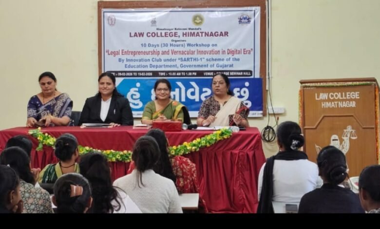 હિંમતનગર કેળવણી મંડળ સંચાલિત લૉ કોલેજ,હિંમતનગર માં Innovation Club, Sarathi-1અંતર્ગત ૧૦ દિવસીય (૩૦ કલાક) યોજાયેલ વકૅશોપ