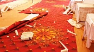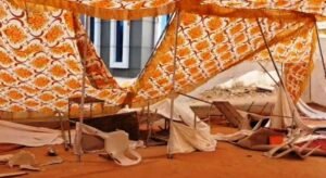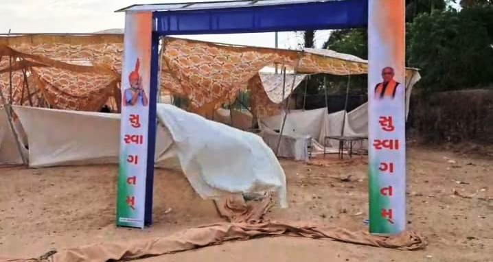 આ દરમિયાન અચાનક આવેલા વંટોળમાં મંડપ ઉડી જતા અને ધરાશાયી થતા ખુરશીઓ તૂટી ગઈ હતી, જેના કારણે આયોજનની ગુણવત્તા અને વ્યવસ્થાપન પર પણ સવાલો ઉભા થયા છે.