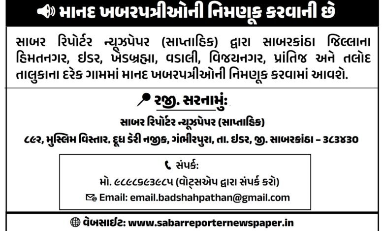 Home/બિઝનેસ/માનદ ખબરપત્રીઓની નિમણુક કરવાની છે બિઝનેસ માનદ ખબરપત્રીઓની નિમણુક કરવાની છે Sabar Reporter Newspaper2 weeks ago0 235 Less than a minute Facebook Twitter LinkedIn Tumblr Pinterest Reddit WhatsApp Sabar Reporter Newspaper2 weeks ago0 235 Less than a minute Facebook Twitter LinkedIn Tumblr Pinterest Reddit WhatsApp Share Facebook Twitter LinkedIn Tumblr Pinterest Reddit VKontakte Share via Email Print