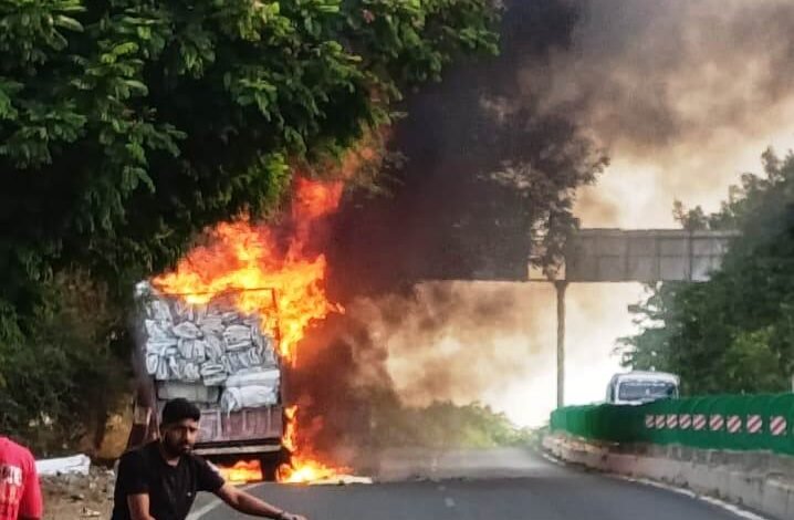 આગ લાગવાના પગલે હાઇવેનો એક તરફનો માર્ગ તાત્કાલિક બંધ કરવો પડ્યો હતો, જેના કારણે વાહનોની લાંબી કતારો લાગી ટ્રાફિક જામ સર્જાયો હતો.