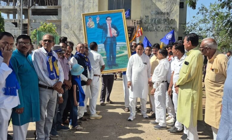 હિંમતનગરમાં ડૉ. બાબાસાહેબ આંબેડકરની ૧૩૫મી જન્મજયંતિ નિમિત્તે ભવ્ય શોભાયાત્રા યોજાઈ
