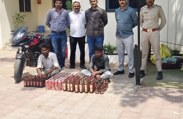 હિંમતનગર ગ્રામ્ય પોલીસ સ્ટેશન દ્વારાઇંગ્લિશ દારૂ તથા બીયર સાથે બે ઇસમોને મોટરસાયકલ સાથે ઝડપી પાડવામાં આવ્યા